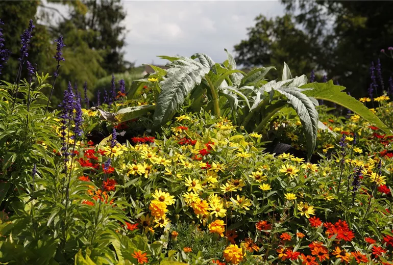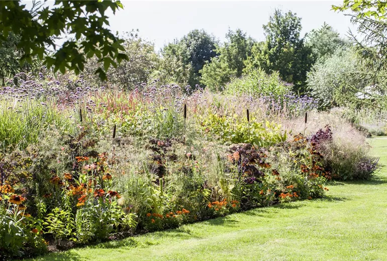 Natürlich gibt es auch den pflegeleichten Garten nicht ohne Stauden. Sie bringen Leben ins Beet. Für wenig Aufwand greift man zu einigen ausgewählten Sorten und pflanzt jeweils mindestens drei Individuen. Unterschiedliche Höhen beachten und gute Farbkombinationen wählen und schon kann der Sommer auch für den Hobbygärtner mit begrenzter Freizeit kommen. Robuste Pflanzen sind gefragt. Allen voran Frauenmantel und Wolfsmilch. Für den Frühling empfehlen sich dann das dicht wachsende Blaukissen, die hohen Lupinen, der farbenprächtige Nelkenwurz und viele attraktive Lilienarten; für den Sommer die rustikale Stockrose, die exotische Gladiole, das zarte Schleierkraut und die strahlende Sonnenbraut. Zum Schluss all die wunderschönen Dahlien und Astern, die den Herbst einläuten.