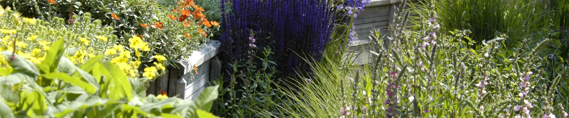 Bei der großen Sortenvielfalt an Sommerstauden lässt sich ein Beet mit vielen bunten Stauden kinderleicht gestalten. Wer keine Idee hat, welche Stauden ideal für Sonne oder Schatten sind, findet die Informationen auf den Etiketten der Pflanzen.