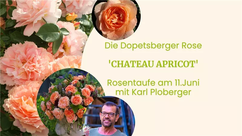 Exklusiv in der Gärtnerei Dopetsberger in Wels getauft – die 'Château Apricot' verzaubert mit ihrem warmen, apricotfarbenen Blütenkleid, das an die sanfte Abendsonne erinnert. Ihre dicht gefüllten Blüten strahlen zeitlose Eleganz aus, während ihr leichter Duft jeden Garten in eine Oase der Ruhe und Schönheit verwandelt. Mit ihrem gesunden Laub, regelmäßigem Flor und pflegeleichtem Charakter wird sie schnell zum Lieblingsplatz für Blicke und Berührungen – ob im Beet, in den Rabatten oder im Kübel.